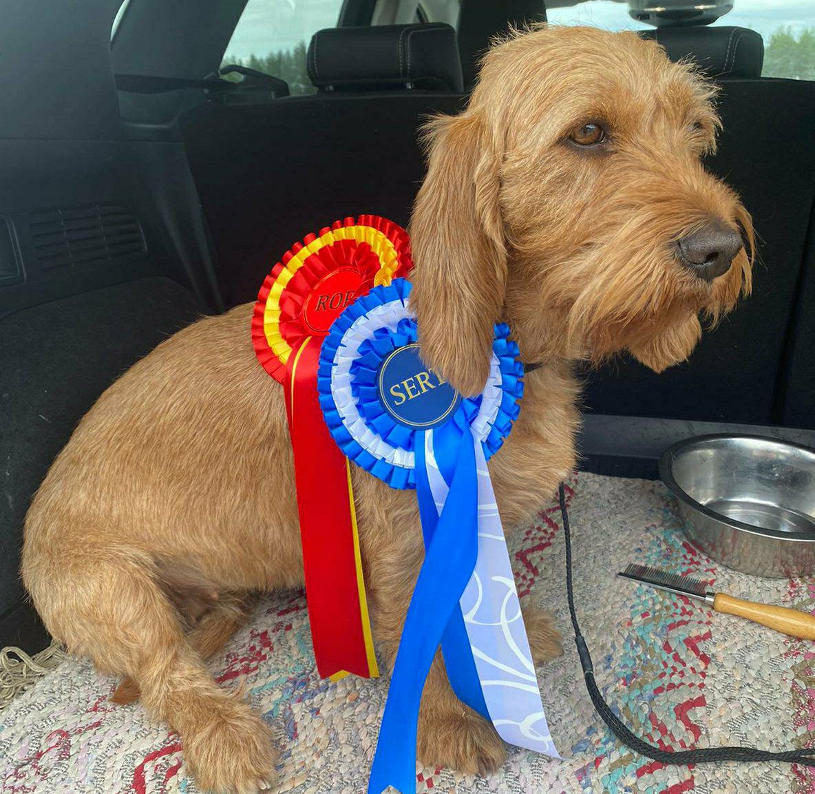 Kevät ja kesä on tähän asti menneet oikein nopeasti. Asumme kesämökillä ja on vähän outoa kun mamma joka päivä tulee ulos uudesta talosta joka ei ollut siinä viime kesänä. Nuusku äiti on vähän pettynyt kun hänen lempipaikkaansa on hävinnyt missä hän istui päivät pitkin vahtimassa hiiriä. Näemme kuitenkin paljon riistaa aamulenkeillä kuten jäniksiä, peuroja ja hirviä. Meillä on myös pikkujänis joka käy pihalla juoksemassa meidän ympärillä. Ei tietenkään tule niin lähelle että saisimme sen kiinni. Tyttäreni Alva on käynyt kauneuskilpailissa ja on palkittu Sertifikaatti:illa sekä ROP:illa. Bella menee ensimmäiseen kauneuskilpailuunsa elokussa ja on harjoitellut kehässä kulkemista. Sulo ja Eino jotka ovat myös yrittäjiä ovat toimineet ”Verotarkastaja Sulo:sena ja ”Kansliapäällikkö” Eino:sena. Basse on sen sijaan nauttinut kanootin keulassa mistä on hyvin nähnyt vesilinnut. Toivottavasti olette kaikki harjoitelleet hyvin koska on vain kuukausi jäljellä kunnes saamme juosta vapaasti metsässä!