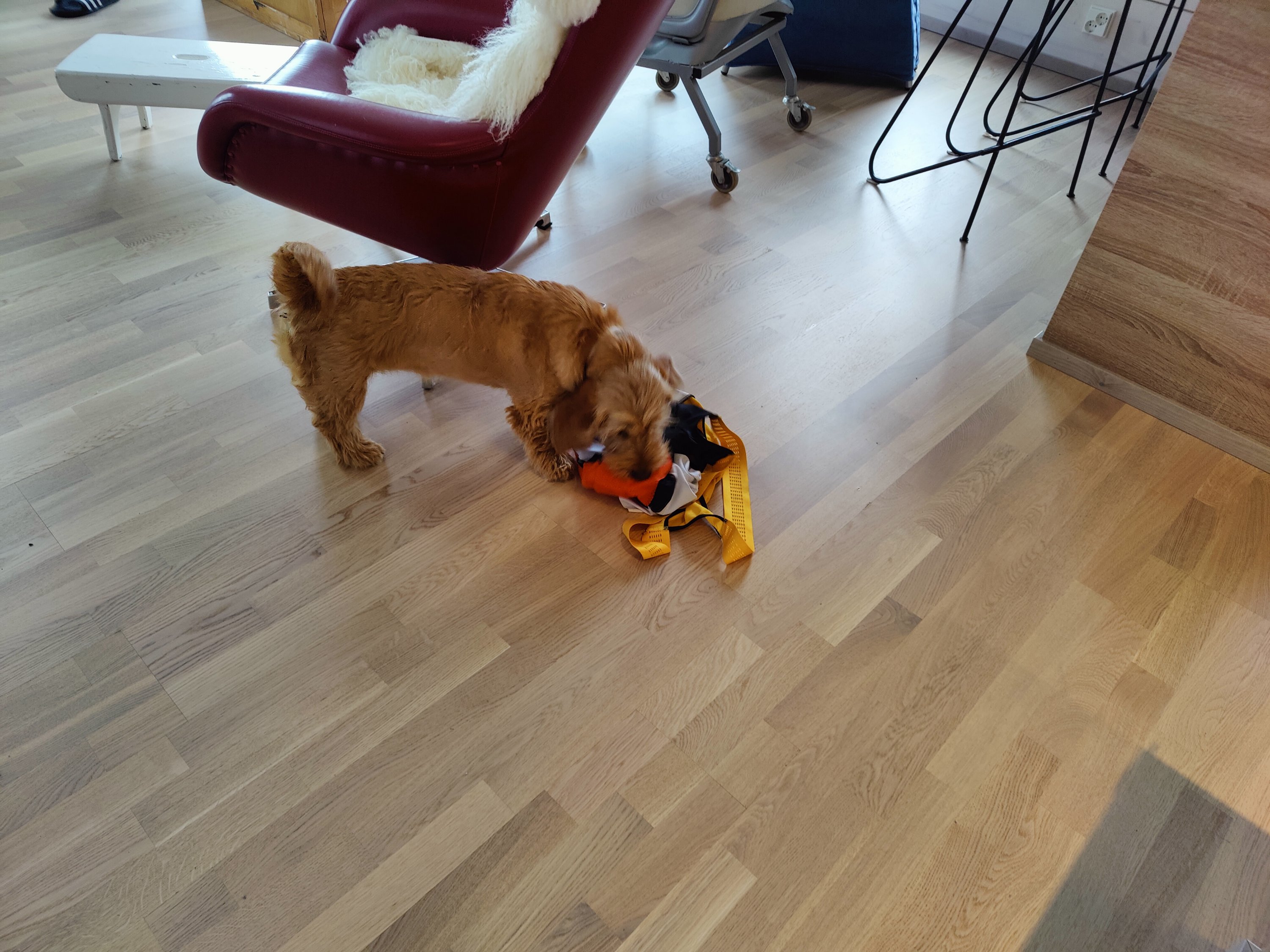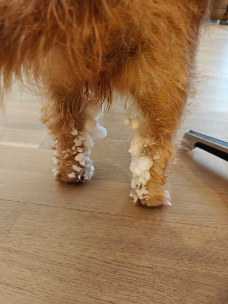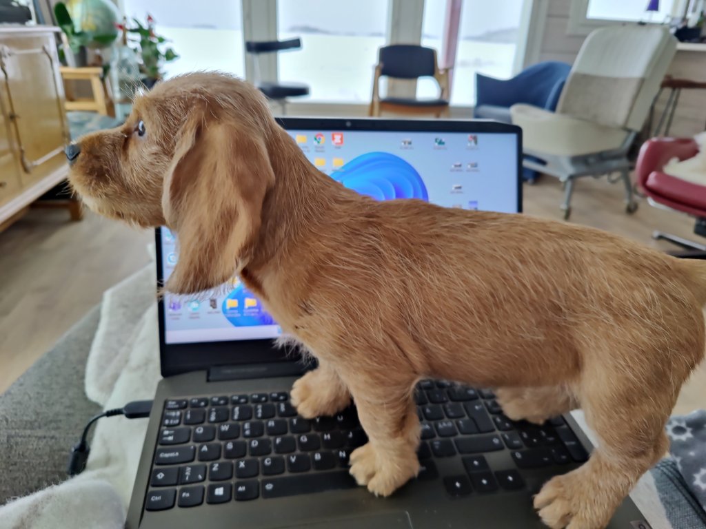 Efter ett långt uppehåll med inblick i vad som händer i mitt så kommer här nu en snabb uppdatering. Som skäribo har jag nämligen inte tid att sitta och skriva alltför mycket eftersom jag har händerna fulla med att träna mina färdigheter i spårningen och drev. I skogen hittar jag alla möjliga intressanta fynd som jag tar med mig hem. Här på gården springer hjortar, rådjur, harar m.fl. djur som gör att jag i princip kan starta träningen inomhus – doften av dem kommer in genom ventilationssystemet. Det enda problemet är att jag måste be matte släppa ut mig och det går hon inte alltid när jag tycker att det är dags att ge sig ut på jakt. Igår morse fick jag en fin träningsrunda på ett par timmar, sedan på kvällen blev det ett pass till på lite över en timme. Imorse var det återigen dags, men matte var trög att stiga upp så mina byten fick ett onödigt stort försprång. Men det var dock inget problem när jag väl slapp ut. Nu har snön smält och det är nu tur för annars är det som jag skulle ha gjort på mig och har byxorna fulla av onödig massa när snön fastnar på benen. Nu hör jag att moffa och matte har börjat prata om pojkvänner åt mig. Det håller på och drar ihop sig till löptiden. Moffa skulle vilja att jag skulle ha resultat från spårprov innan jag träffar pojkvännen, men som riktig skäribo vill jag inte köra bil så jag gör allt i min makt att slippa det. Själv tycker jag att domarna kan komma hit och bedöma mig när jag ändå tränar varje dag.