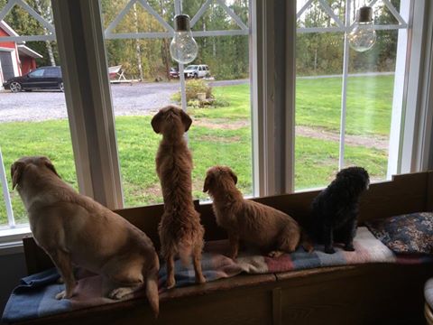 Alla (läs matte) har varit så rädda att inte jag, Smilla, skulle lära mig att skälla efter haren, men nu har hon allt fått tji! I torsdags gjorde jag min premiär med lite halvbra skall. Efter att ha fått hotellservice hos Molly o Tilde över helgen så for moffa iväg med oss till skogs imorse kl 6. Det var ännu mörkt och nästan lite rimfrost på marken och det var idealt jaktföre. Nu tänkte jag att jag minsann ska visa vad jag går för också så att även jag börjar få följa med och tävla med mamma My! Sagt och gjort, jag gav mig ut på spåret och genast fick jag nos på haren! Yes, bara att börja ge skall och det gjorde jag så att jag skulle ha fått många, många skallminuter i en tävling. Dessutom skäller jag (trots att jag säger det själv), lite bättre än vad mamma gör 😀 Dessutom har jag tätare skall än mamma My och bättre könsprägel!