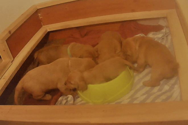 Nu börjar det bli riktigt liv i luckan hos Tuiskupolun kennel, men det är ju bara ett tecken på att allt är som det ska vara. Mommo och moffa önskar förstås att de här små nya medlemmarna ska lära sig lite mera om när det är dag och när det är natt! 😴 🌛🌞. Senaste natt hittade t.ex både Eino och Bella ut ur sitt trygga hem, men sedan blev det ett otroligt skrik när de inte på egen hand kunde ta sig tillbaka till sin trygga tillvaro i lådan med sina syskon. De begav sig naturligtvis inte ut på äventyr samtidigt, utan de är ju självklart självständiga individer som ger sig ut på äventyr på egen hand. Men som tur är så hörs nog deras ljud 🔊 redan, så det kommer nog att höras i skogen där de färdas! Lilla Jakke var också på äventyr ut ur lådan en dag och tog sig inte tillbaka in till tryggheten, så då gick nog jag Smilla och hämtade moffa för att komma och hjälpa mig. Min uppgift som mamma är ju i detta skede att skola dem att bli så självständiga som möjligt. Mommo My är ju också med, men hon vet att det här är min uppgift så hon kommer inte in i vårt rum och hon styr dem inte heller, trots att de har börjat komma in i andra delar av huset. Hon står bara och ser på och ger mig lite råd hur jag ska gå till väga. Trots att moffa har börjat ge mina barn lite annan mat, förutom enbart min mjölk, så har jag ännu rikligt med mjölk, vilket är bra för lilla Jakke.